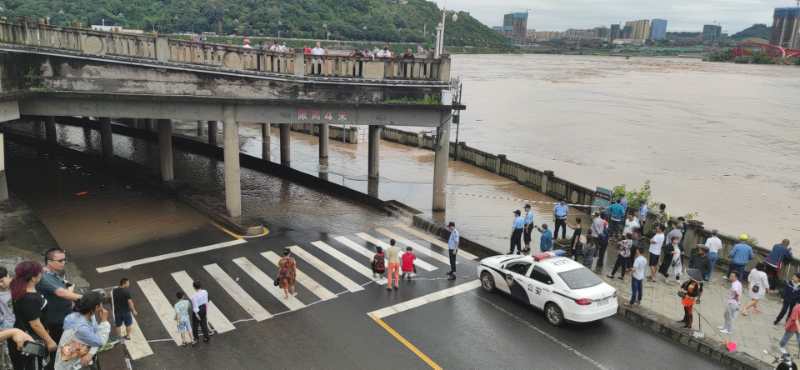 8月18日下午14时左右,受连续上涨水位影响,位于宜宾中心城区的翠屏区滨江路东段部分路面已被洪水淹没。