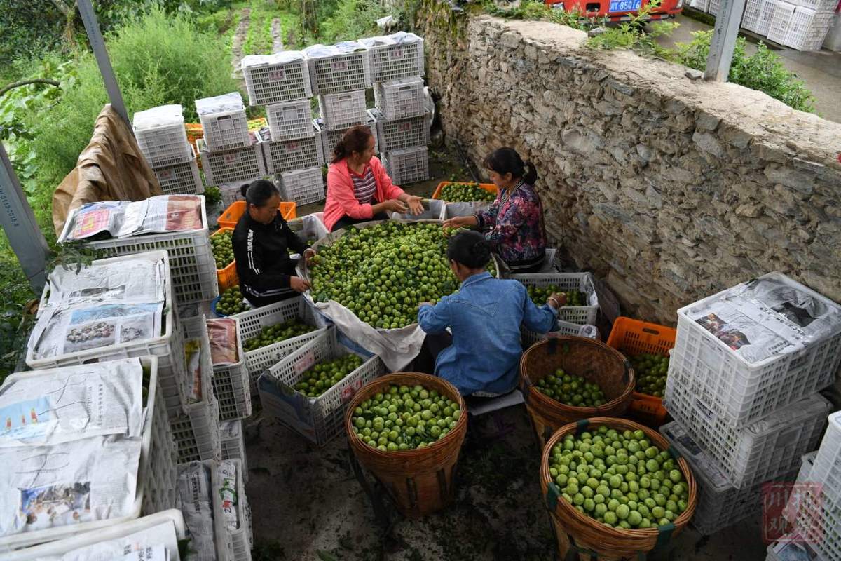 位于高半山的佳山村曾是省级贫困村,通过发展特色水果实现了脱贫摘帽。村上现有水果面积近1700亩,其中1100亩是脆李。正采摘的青脆李因甜脆少渣广销广东、上海、重庆等地。每到采摘季,不少果商蹲在村上采购,要求李子一下树,立刻装车送走。