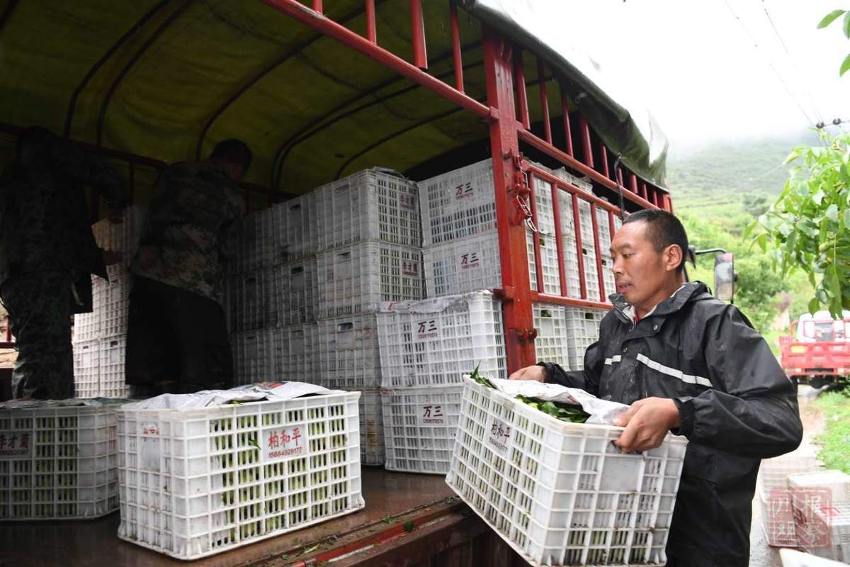 “发车了,发车了。”雨中,一辆辆红色货车驶出佳山,下一场夜收即将开始。