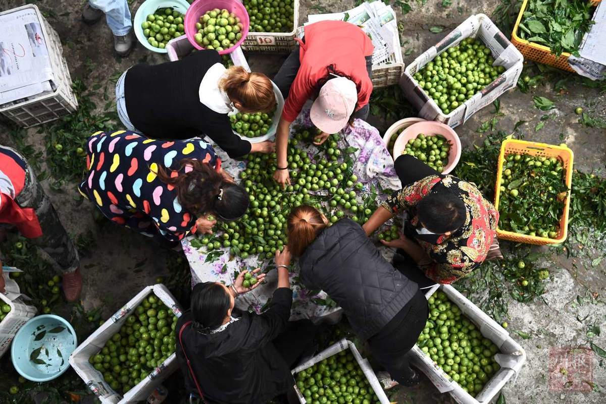 “走!”十来束光汇聚在一起,钻入房后的李子林,只听见林子里一片忙碌的唰唰唰声,晃动的头灯不时闪过正在采摘的人,雨水、汗水交织,来不及顾及,大家心里只有一件事“赶紧摘完,天亮,收货商就来了”。