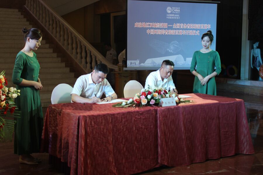 为整合打造渝遂两地精品旅游线路,助力巴蜀文化旅游走廊建设,促进成渝双城经济圈建设,遂宁中国死海旅游度假区管理委员会和重庆交通运业有限责任公司签署战略合作协议,就中国死海景区直通车正式启动、资源整合、联合推广、战略双赢等事宜开展全面合作,以期促进渝遂两地精品旅游线路开发向纵深推进。