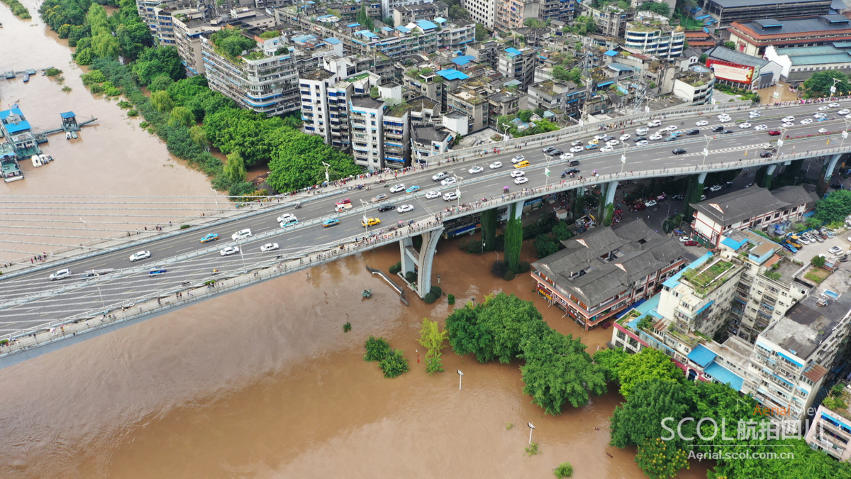 根据长江上游水文局预报,长江泸州站8月19日10时洪峰过境时,水位将漫过东门口滨江路2.2米左右,漫过管驿嘴滨江路1.3米左右。