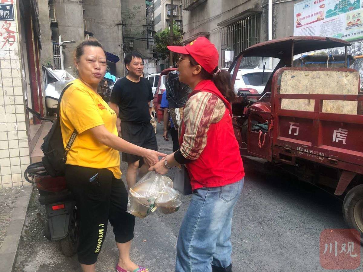8月19日早上7:00,泸州市江阳区南城街道国窖社区与上平社区交界处,国窖花园点位,10位社区工作人员和志愿者执守着。这时,围观群众中一位身穿黄衣的人说了一句:“我去给你们买面。”就转身离开了。不一会,这位市民和他的几个同伴一起,打包了10份臊子面送了过来。熬了一晚上的夜,能吃上热腾腾的面,让工作人员与志愿者都十分感动。“看打包盒应该是2两面,大家都吃的干干净净的,真的十分感谢。”上平社区工作人员李春梅说。
