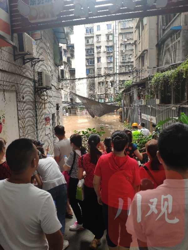 “不要围太拢了。”8月19日上午10:30,穿着红色志愿马甲、戴着黑框眼镜的大学生志愿者梁钦,正在泸州市江阳区南城街道滨江社区一居民楼外围维持现场秩序、劝离围观市民,不少市民在警戒线外看最新水位。