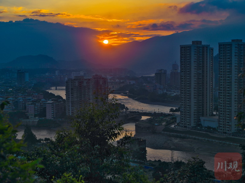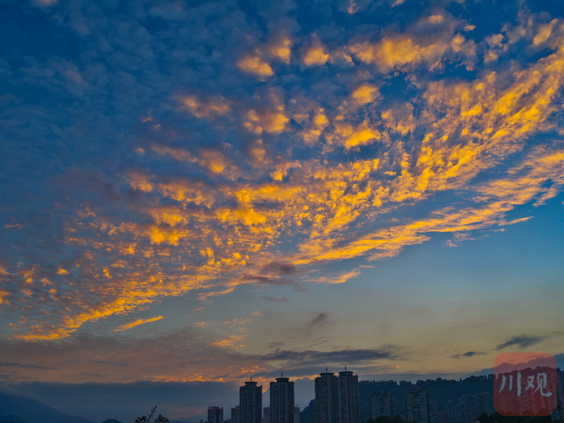 视频和图片为8月19日傍晚,雅安雨城区日落后,天空中晚霞万丈,如同画卷。