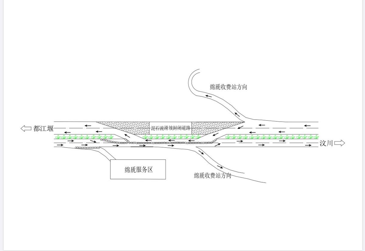 需要提醒的是,因绵虒服务区临时收费站受损封闭,所有前往汶川的车辆必须经由银杏收费站进站往汶川行驶;绵虒段簇头沟处为单幅双向通行车道,出州车辆(汶川至成都方向)在该路段处转换至对向车道,与进州车辆共用车道单幅双向通行,至绵虒服务区转换点恢复正常通行。