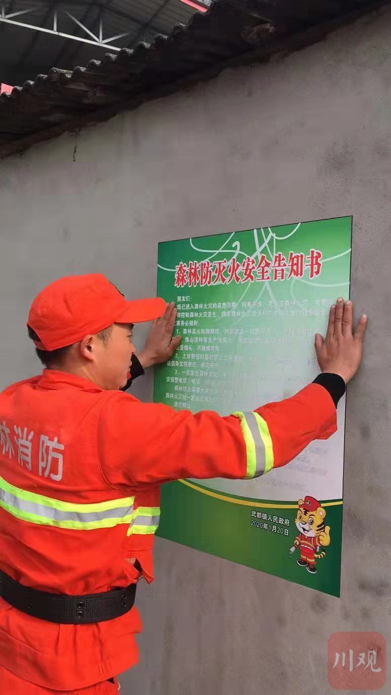 不止武都镇,绵阳各乡镇机关干部包片,以坝坝会、出动宣传车辆、组建宣讲队、播放村村通广播、设置标识标牌等措施,扩面宣传。村组干部包户,在重点林区推行户户张贴“防火命令防火十不准”,户户签订“防火承诺书”,点对点宣讲,面对面劝导,封补漏点,确保网格内宣传责任无缝衔接。