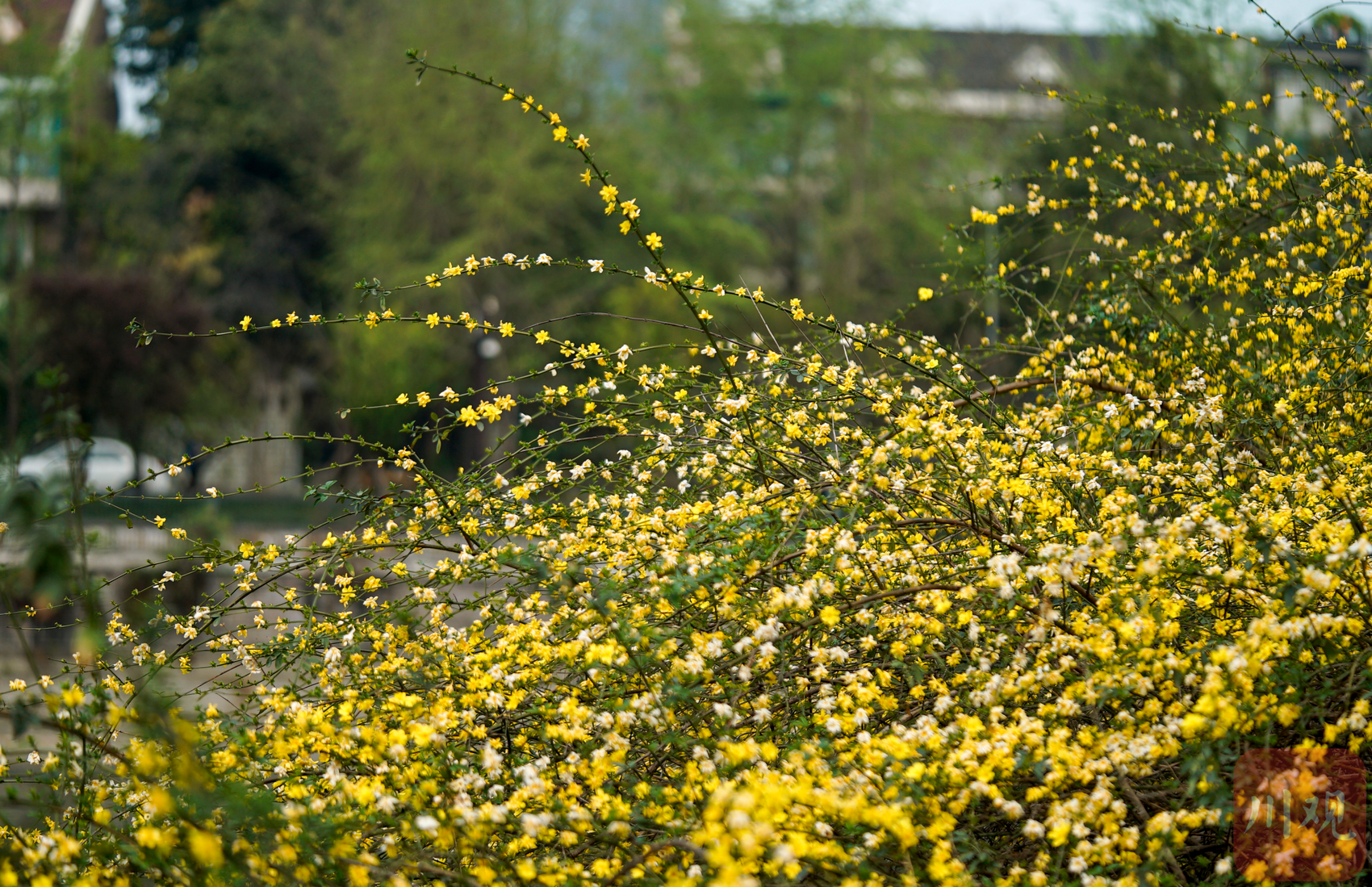 锦江边盛开的黄色木香花。