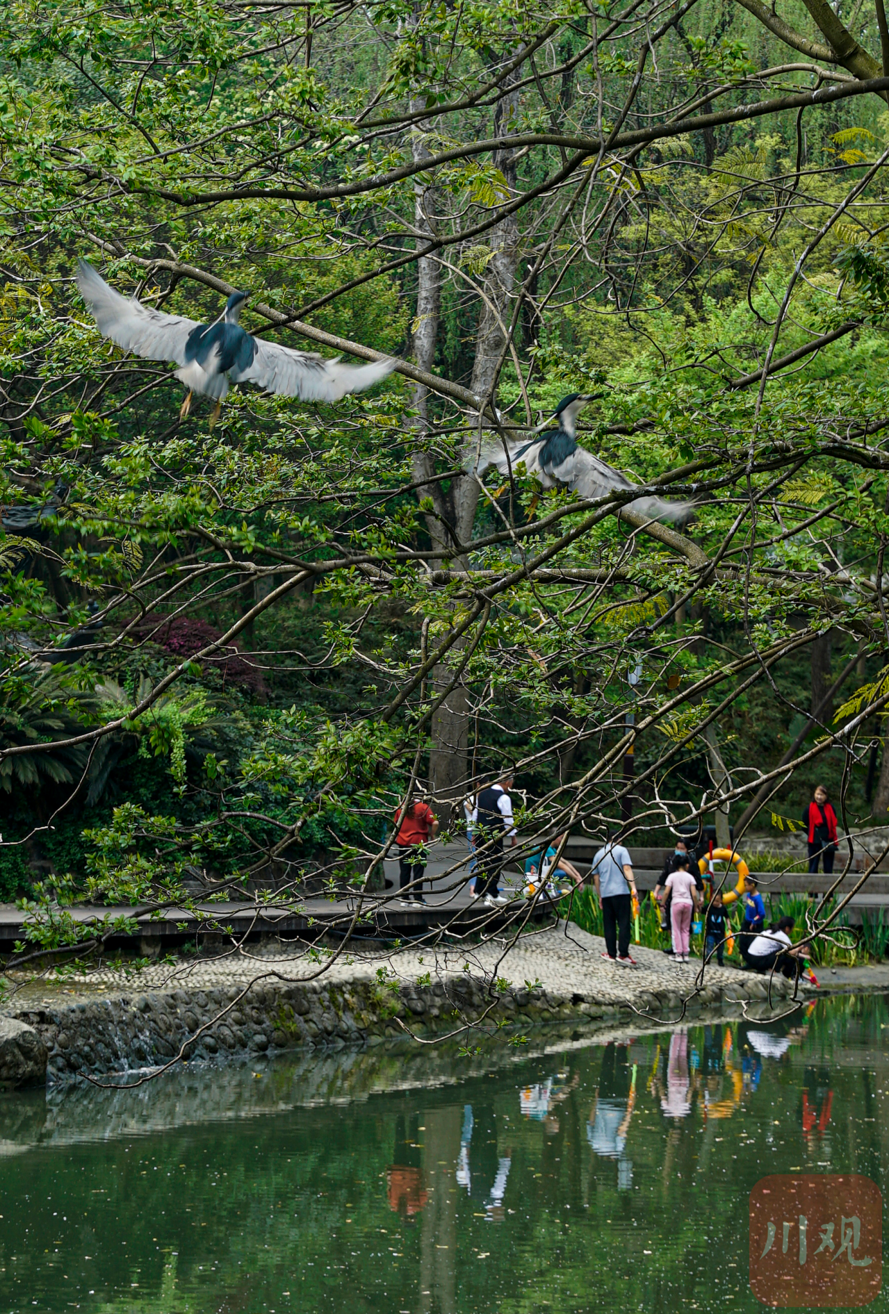 浣花溪公园内飞翔的苍鹭。