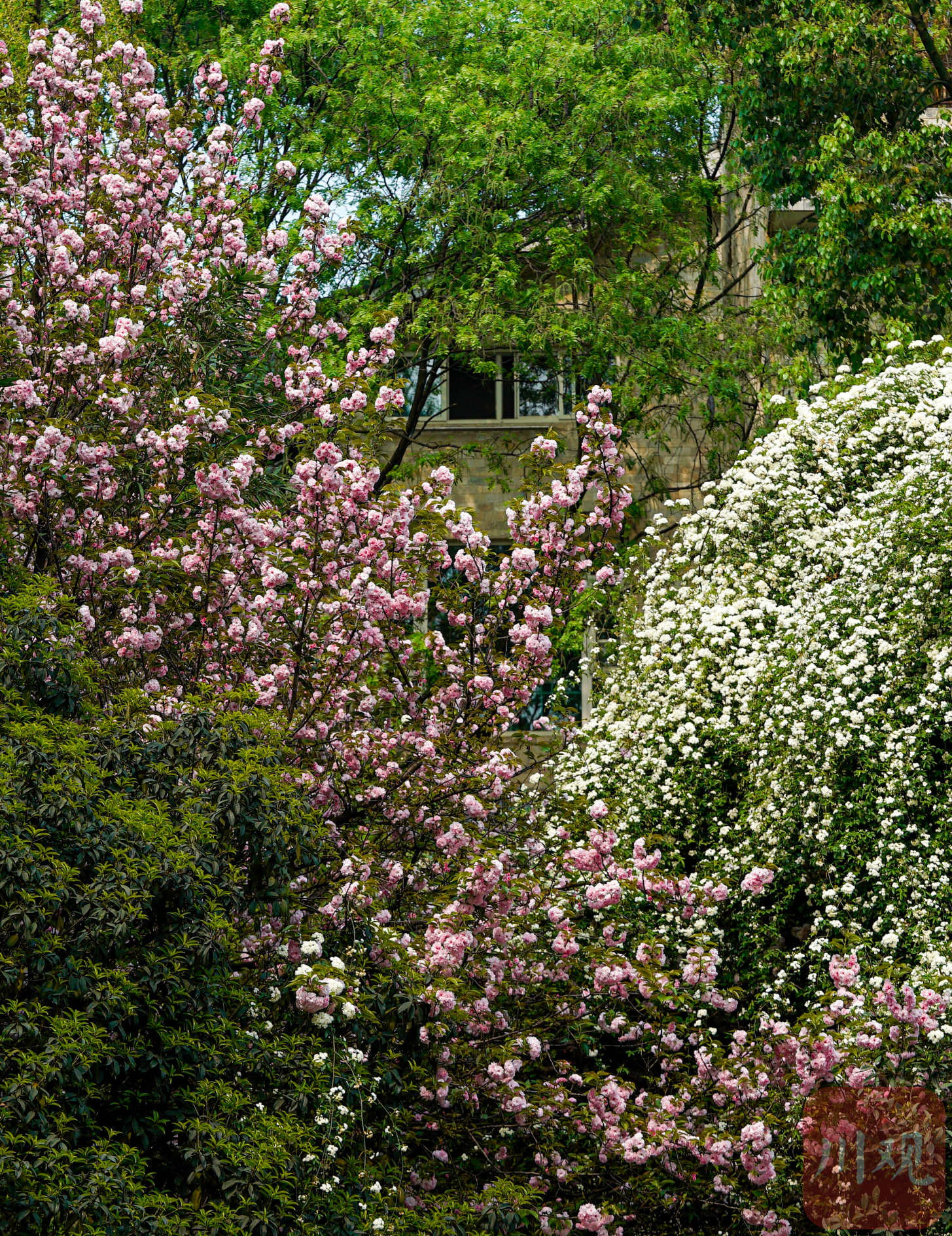 在这个时节漫步于成都街头巷尾,你随时随地能感受到“花重锦官城”的繁花似锦,百花绽放、树木葳蕤,无时无刻不为我们展示着这座城市的物候与生物多样性。只要你静心观察,这座城市的美丽总是拥绿水而居,与百花为邻。