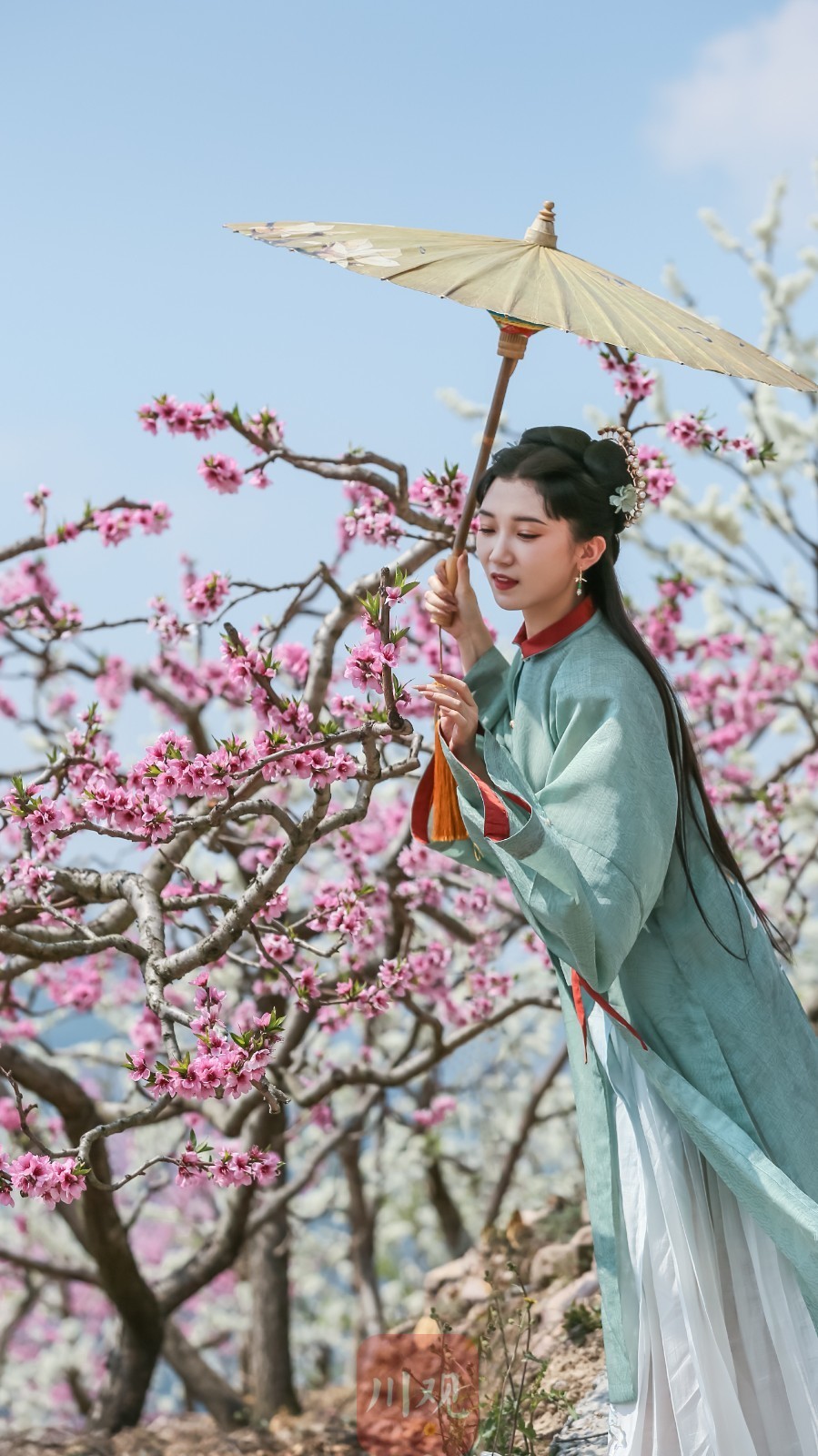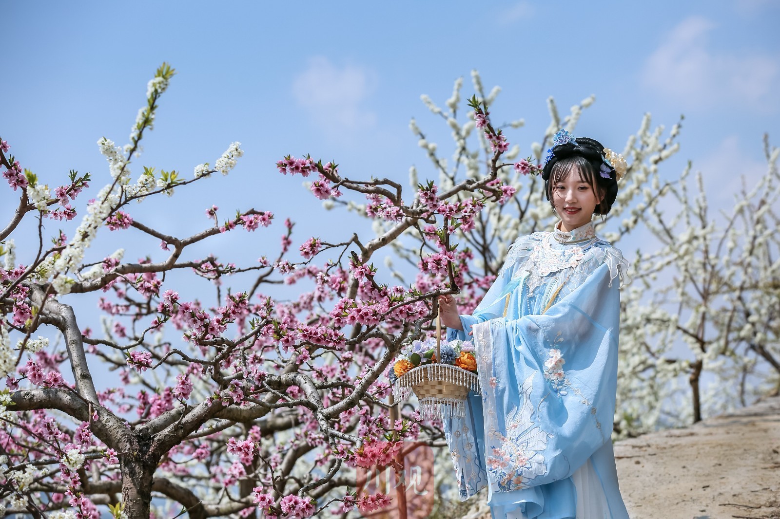 汉源九襄不仅有梨花,还有桃花、李花,值此春光正好,万亩花海鲜花齐放,花海中有花仙子出没。