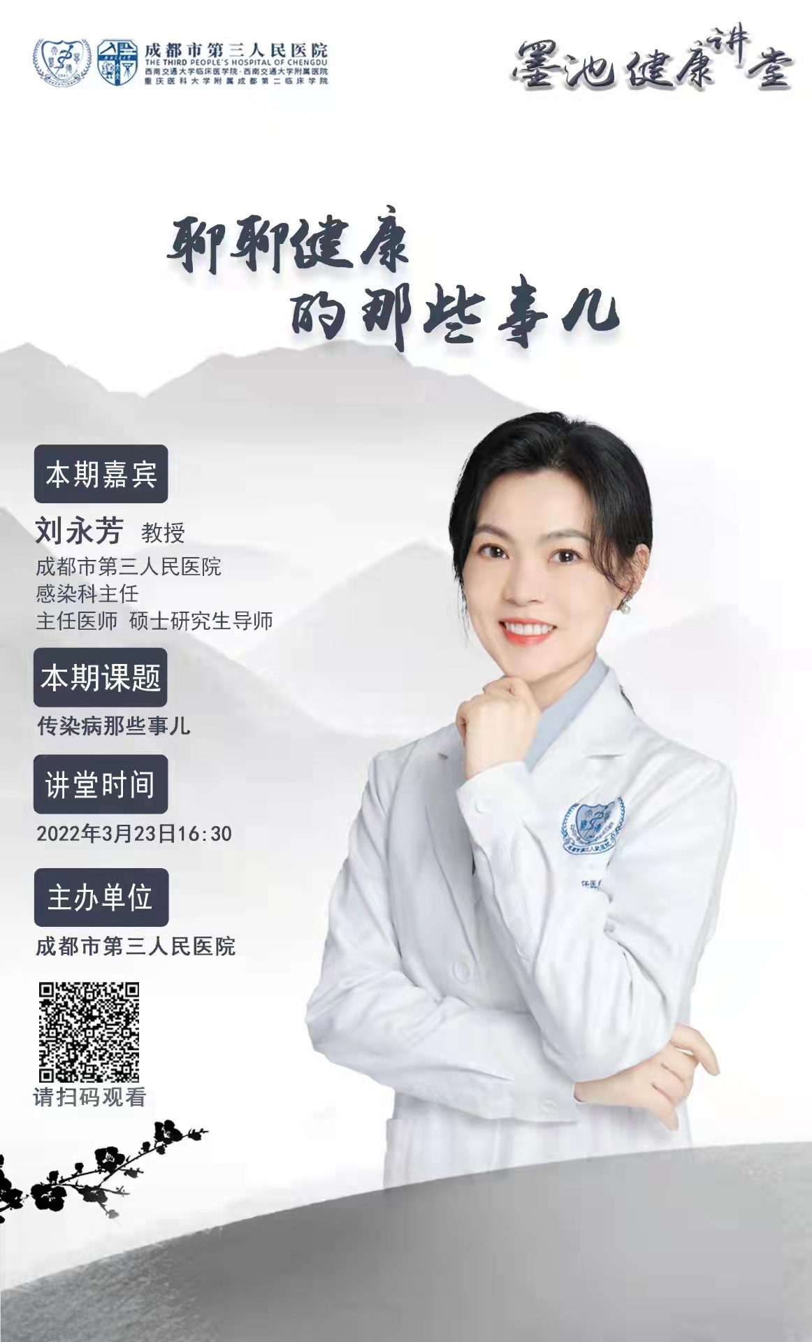 3月23日,由成都市第三人民医院原创的健康科普频道——“墨池健康讲堂”,全网上线首播。该频道以“聊聊健康那些事儿”为主题,每周三下午16:30准时开播,每期“1个话题+1段生活”。聚焦百姓关注的健康热点,邀请业界知名专家,围绕常见病、高发病等进行健康科普宣传,用通俗易懂的方式进行专业性的指导,旨在为人民群众提供系统连续的健康服务,提高全民健康素养水平。