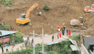 在现场参与救援的四川省铁投集团峨汉高速公路2-14分部负责人金涛介绍,因滑坡面范围太大,现场分为2个搜救工作面、3个抢险保通工作面、1个卸载工作面同时作业。
