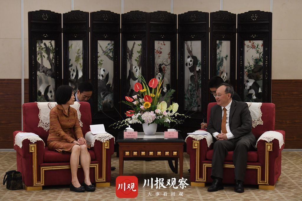 张淑贞感谢四川在疫情防控上给予泰国各方的支持。她说,泰国正大力推动东部经济走廊建设,这与四川正在推进的南向开放战略高度契合,热忱欢迎四川企业前往发现商机、投资兴业,实现更全面深入的互利共赢。