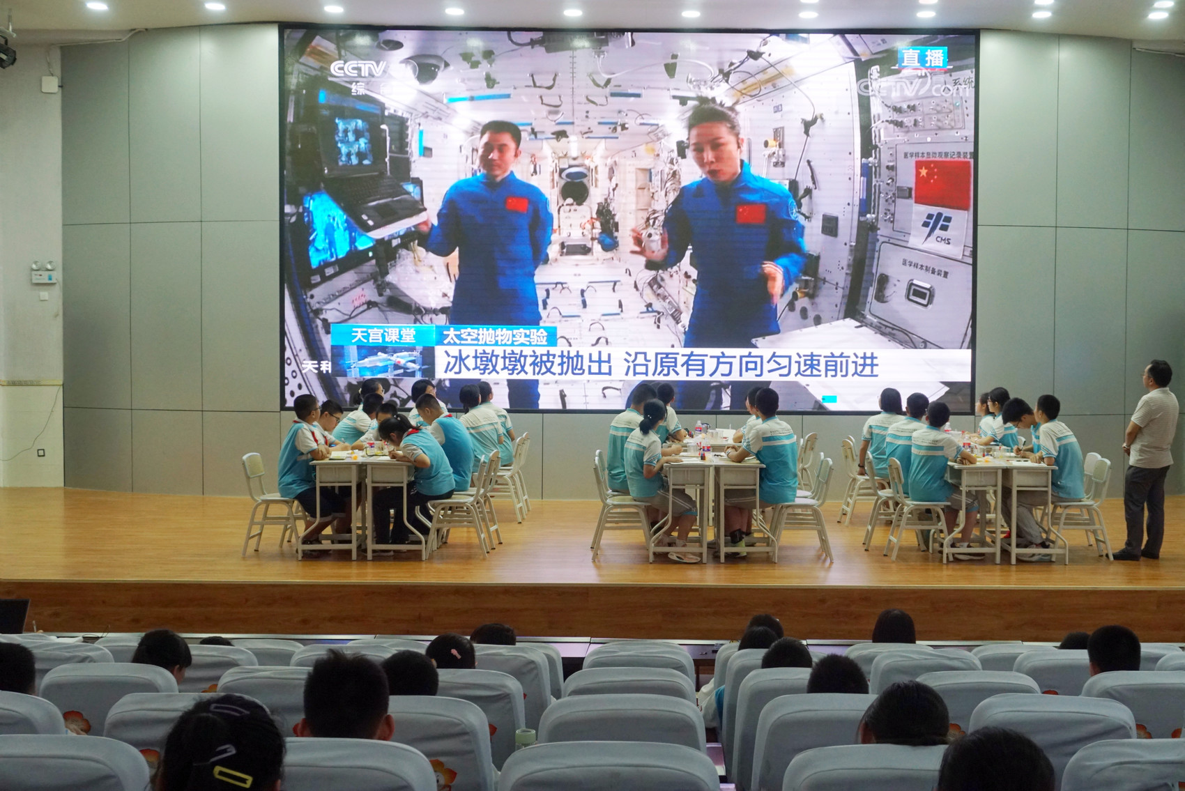 时隔三个多月,天宫课堂再次开讲。3月23日15时40分,“天宫教师”再次在中国空间站“天宫”给地面学生上课。攀枝花市二十五中小阳光外国语学校的百余名师生通过直播,观看“天宫课堂”第二讲,并和航天员同步进行简易地面科学实验。