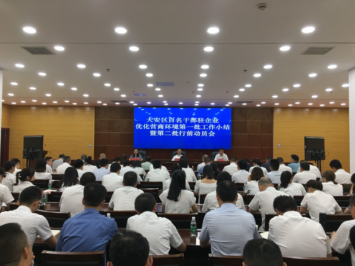 今年6月30日,大安区启动百名干部驻企业优化营商环境行动,通过“1名县级领导+ 2名年轻干部+3个专家人才团队”方式,从今年7月至明年7月,分批安排百余名机关干部和专家人才团队进驻民营企业开展为期1年的驻企服务。
