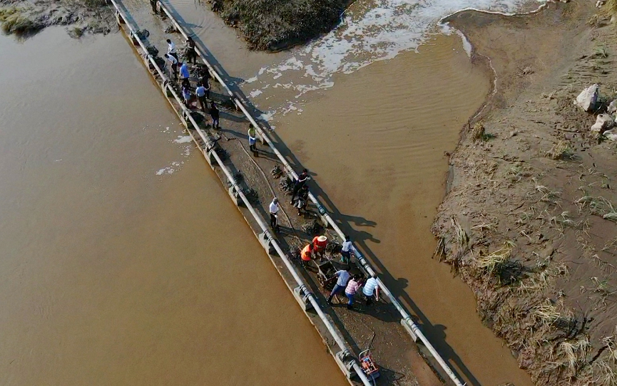 “淤泥是不能直接清理到河水内的,我们需要通过手推车先将其集中起来,静置晒干后,再统一拉倒弃土消纳场进行处理。”在和现场指挥调度清扫工作的负责人交谈的同时,郑莉手上的动作丝毫也没有慢下来,铁铲清淤、水枪冲洗,不到30分钟,一段被淤泥覆盖的步道就重新展露“真颜”。