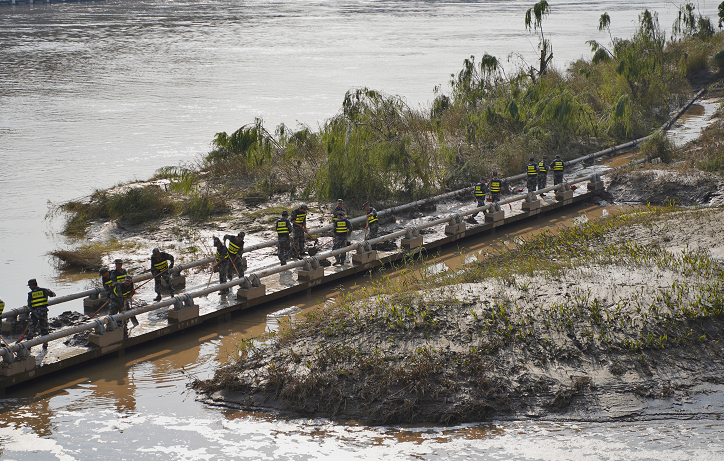 “目前,全区被淹亲水步道已有90%完成了清淤、消杀的工作。这一段的水退得最晚,所以才刚刚开始清扫。”东兴区政府副区长邓文冲介绍,洪峰过境后,东兴区陆续出动了上万人次,多台工程、消防车辆对全区范围内的亲水步道进行清淤、冲洗,清除淤泥近7000余吨,累计清理杂草、散乱垃圾等约160余吨。