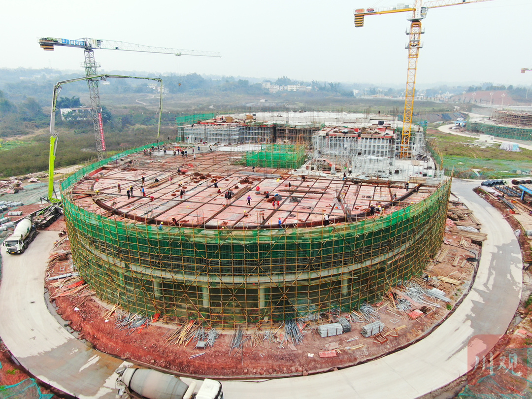 近日,拍客在宜宾市长宁县文体中心项目施工现场看到,塔吊林立、机械轰鸣、焊花四溅……工人们穿梭其中紧张作业,全力推进项目建设,整个施工现场繁忙而有序。