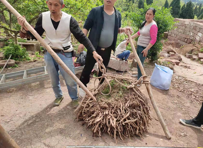 当天,在挖掘这株天冬时,3名壮汉轮流上手,从上午11点挖到下午2点多,才将这株天冬完整挖出。而在搬运过程中,4名壮汉费了很大力气才将其抬出。