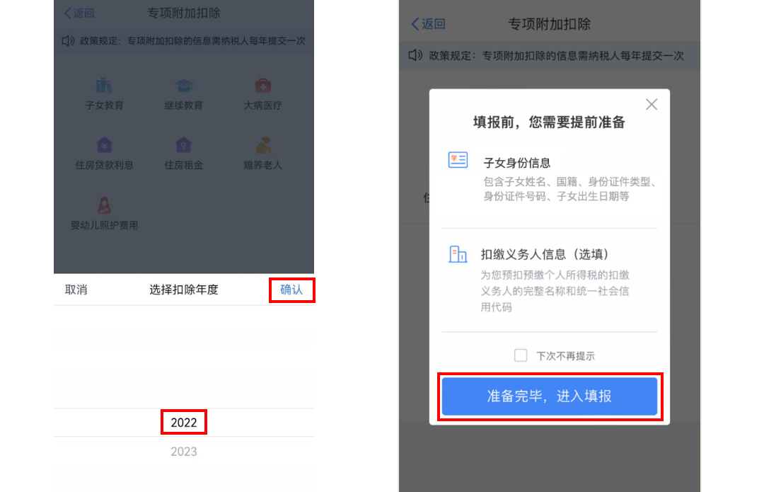 第二步,进入申报界面后,“选择扣除年度”设为2022年。税务机关提醒,由于新政策自2022年1月1日起施行,目前正在进行的2021年度汇算中,不能填报婴幼儿照护专项附加扣除。