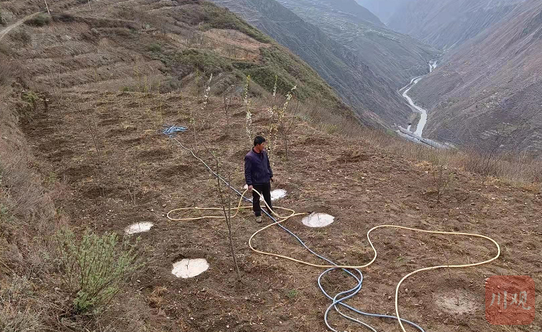 “全靠水,我们现在种地的收入翻了几番。”3月30日,在理县薛城镇箭山村一处山坡上,61岁的村民潘支保和两位老人,看着浇灌后花朵鲜艳的果树感慨道。