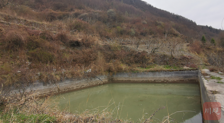 眼前的蓄水池呈正方形,长约15米,高约3米,池内还有一半的蓄水量。潘支保回忆,“我们本村没有水源,唯一一股水是从8公里外邻村引来的,为了更好地利用水资源,村上在1975年修了这座蓄水池,能蓄900立方米的水。”