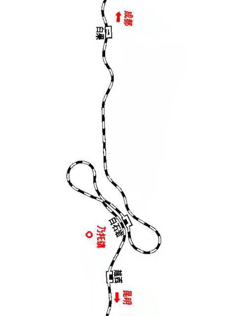 在吉新隧道穿越的山间,蜿蜒着建造于50余年前的老成昆铁路。白果车站和越西车站之间直线距离仅8公里,地形高差却达196米。半个世纪前,在机车牵引条件受限、施工技术条件落后、难以修建长大隧道的情况下,勘察设计人员采用小坡度和短隧群方案,创造性地描绘出“8”字形展线,形成上中下三层线路重叠、同过一个村庄的壮美景观。