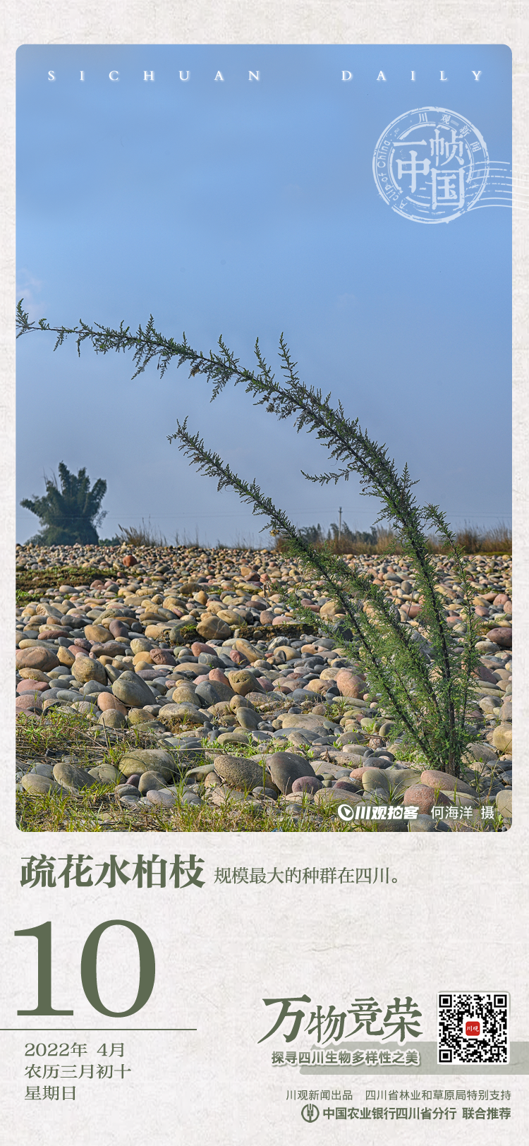 2018年初,在宜宾市江安县双江村的长江河滩,发现了大片疏花水柏枝,初步统计有3万多株,是全国目前发现规模最大、数量最多的疏花水柏枝种群。