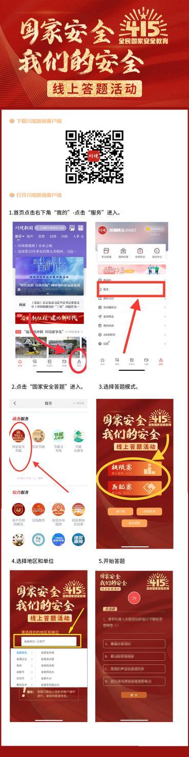 为进一步增强全民国家安全意识,树牢总体国家安全观,川观新闻联合省委有关部门开展的“国家安全·我们的安全”线上答题活动于4月1日正式启动。