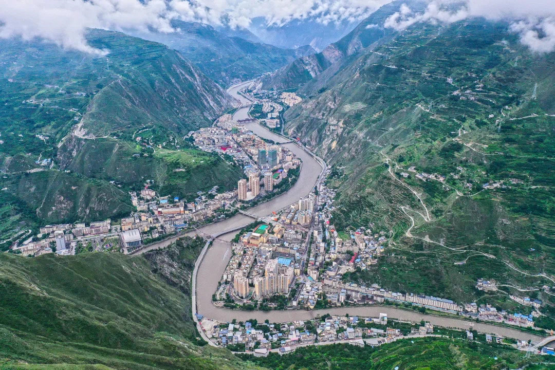 从布瓦村的无忧花果山上俯瞰汶川县城