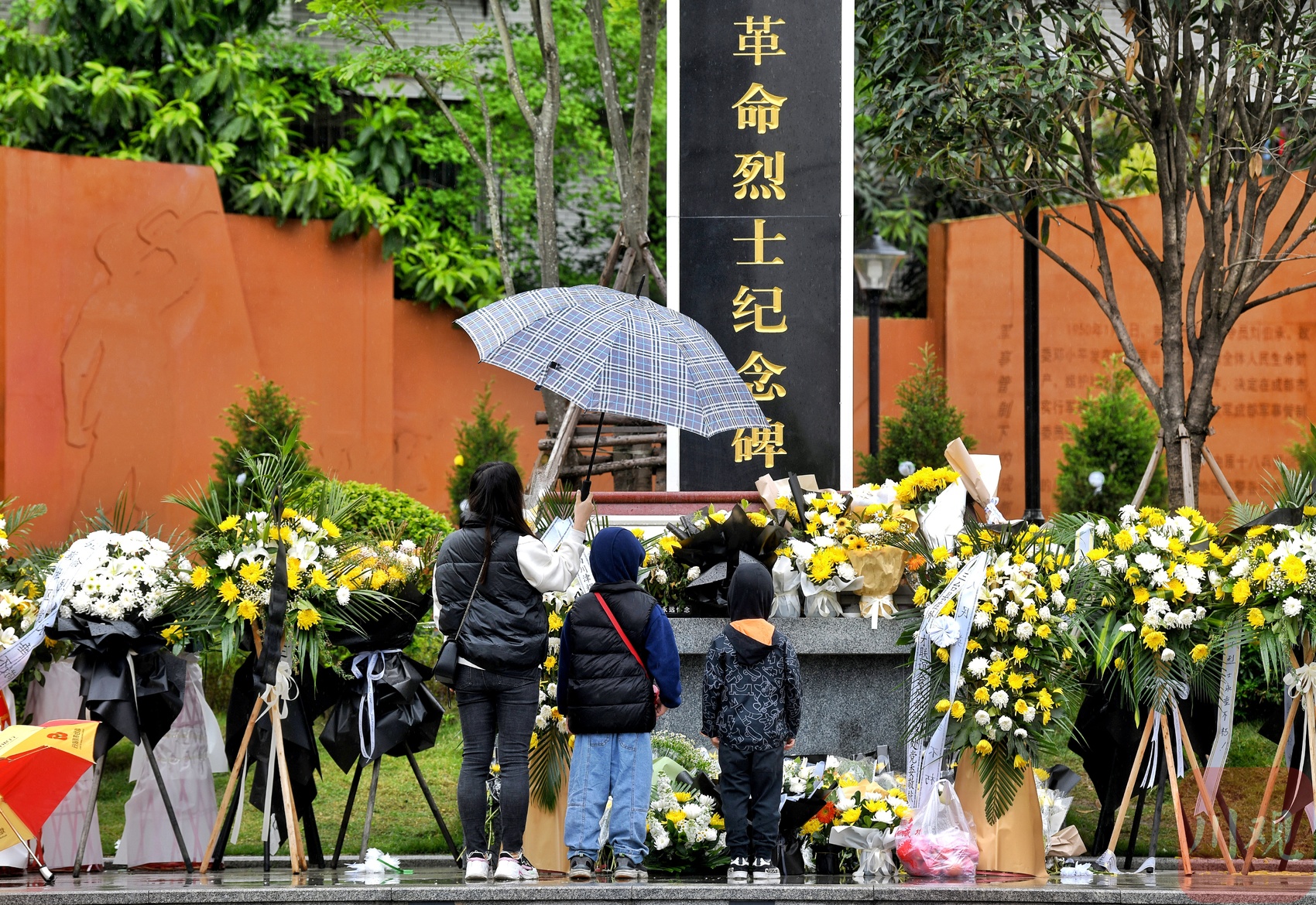 清明时节雨纷纷。4月4日,成都马鞍山烈士纪念园的革命烈士纪念碑前,鲜花和花篮摆满石阶,寄托了人民群众对革命烈士的无限敬意和哀思。