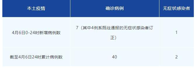 4月7日,成都市卫健委官方微信发布消息:4月6日0-24时,成都市新增本土确诊病例7例(其中4例系既往通报的无症状感染者订正),新增本土无症状感染者1例。截至4月6日24时,成都市本轮疫情累计报告本土确诊病例40例,本土无状感染者2例。