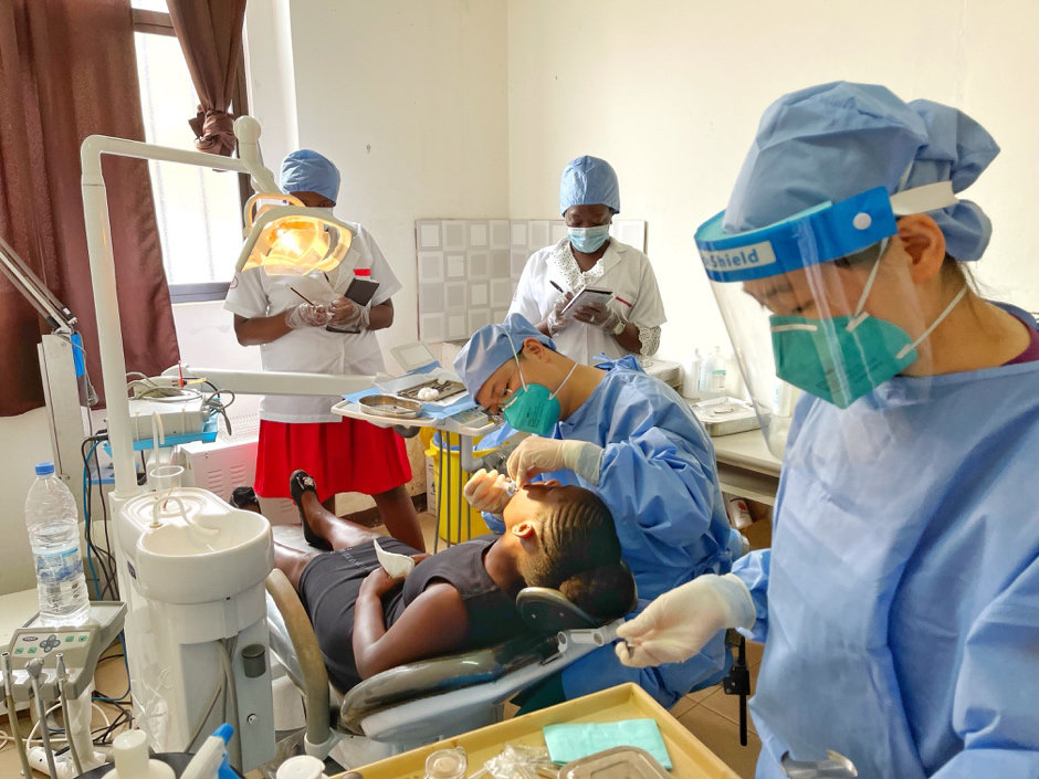 圣普大学的请求得到了中国驻圣普大使馆的支持。医疗队也结合自身情况,为圣普大学健康学院制定了人才培养方案。首期培训从口腔专业开始。本次援圣普医疗队的队员除口腔专业外,还来自心内、妇产、针灸和血管外科等领域,相关学科的医生都参与到了圣普大学健康学院的人才培养中,通过主题为“医带医路”的知识专题讲座,介绍新技术和传播新知识,拓宽健康学院学生的知识面和视野,增强从事医学事业的信心。