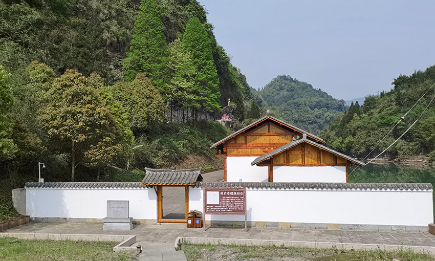 花滩镇出发,行驶约十多公里,过了李家崖,再行百米,车停河滩,一幢原木建成的川西风格建筑展现眼前,“何君尊楗阁刻石博物馆”到了。