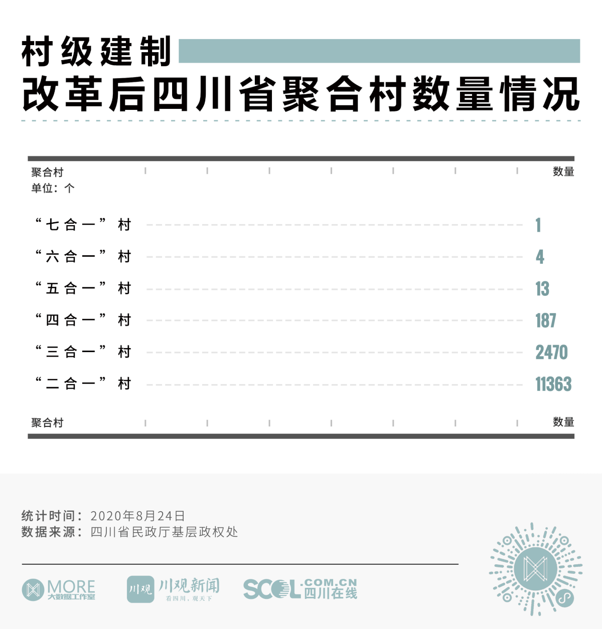 调整后,全省有“七合一”村1个、“六合一”村4个、“五合一”村13个、“四合一”村187个、“三合一”村2470个、“二合一”村11363个,让分散在原建制村的产业实现串点为线、连线成片,整合了资源要素、盘活了闲置资产、壮大了集体经济、带动了群众增收。