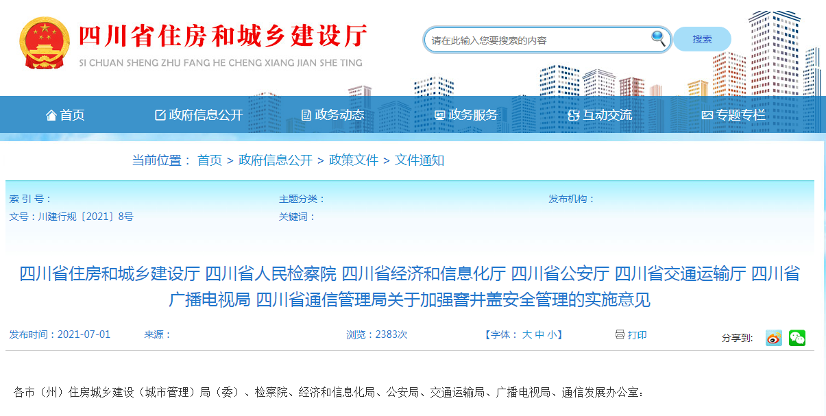 去年7月,四川省住建厅等七部门联合出台的《关于加强窨井盖安全管理的实施意见》明确:对存在破损、下沉、凸出、松动等情形的窨井盖,要尽快完成维修加固。