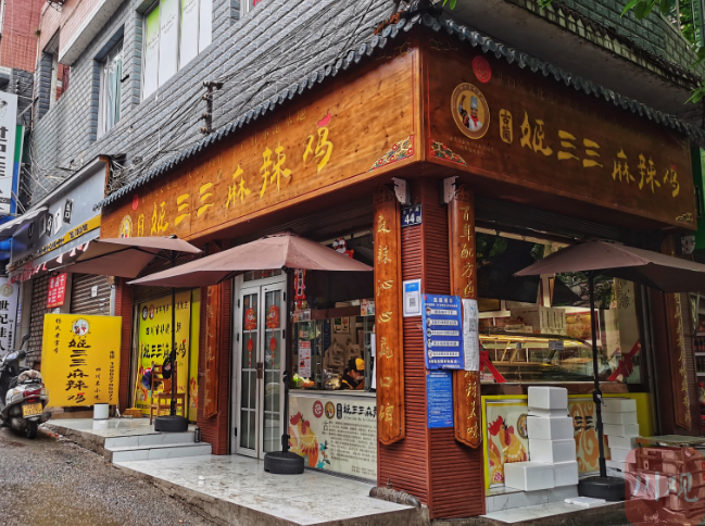 闲暇时候的“姬三三麻辣鸡”门店。郭荞璐摄