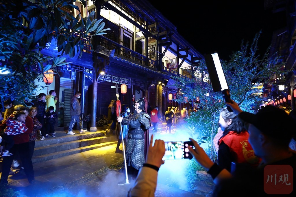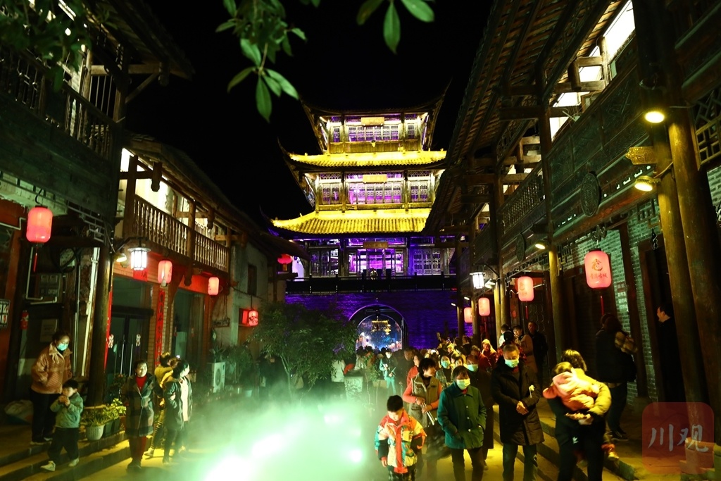 绚丽的灯光秀吸引大批游客和当地群众前来围观打卡,“我也是第一次看到家乡的灯光秀,太久没回来,没想到青溪古城变化这么大,风景越来越美了,欢迎大家来我们青川耍!”忙着拍照的杨女士兴奋地说道。