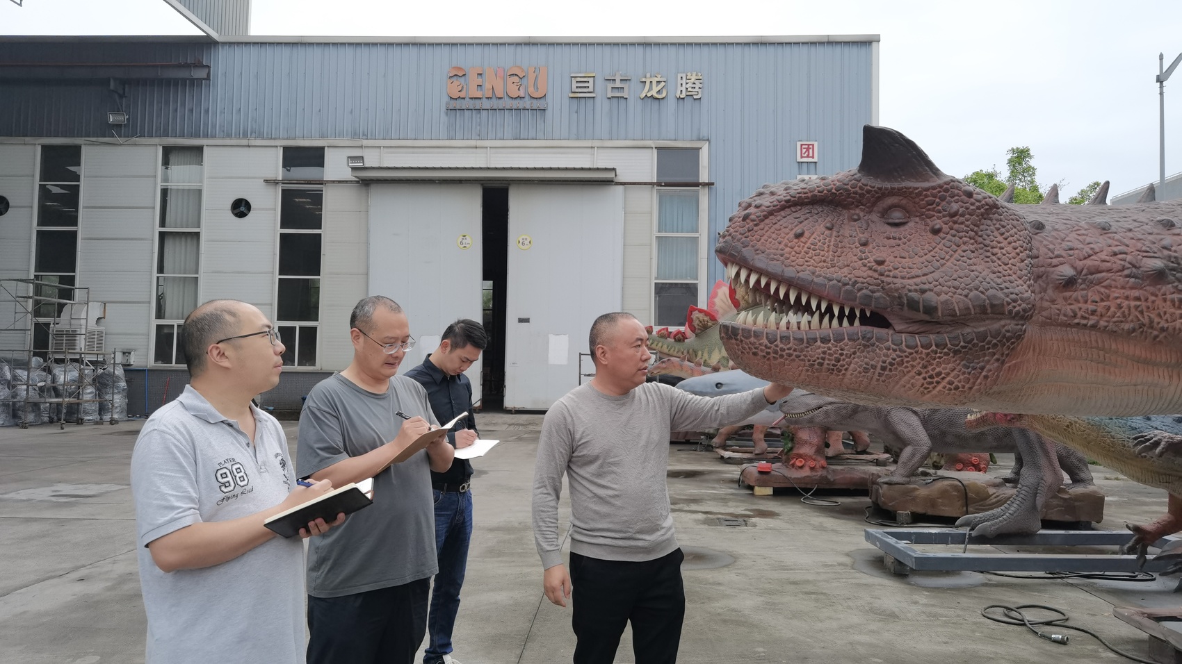 下午,采访小分队来到位于自贡高新技术产业开发区的自贡亘古龙腾科技有限公司,在机械车间和美术造型车间,员工正加紧生产。仓库里,公司副总经理卢天志等一干人正为一组仿真恐龙成品打包。“这批产品本月内将发往伊朗。公司一季度共完成120多万美元的订单。”让卢天志高兴的是,去年公司生产的仿真恐龙首次打入非洲市场。