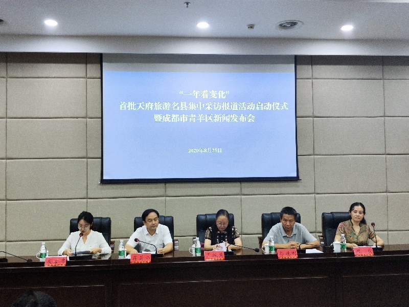 8月25日,“一年看变化”首批天府旅游名县集中采访报道活动启动仪式暨成都市青羊区新闻发布会在成都市青羊区举行。即日起到9月11日,数十名媒体记者将陆续走进成都市青羊区、都江堰市、剑阁县、峨眉山市、长宁县、阆中市、广安市广安区、汶川县、稻城县、西昌市,对首批10个天府旅游名县进行集中采访报道。