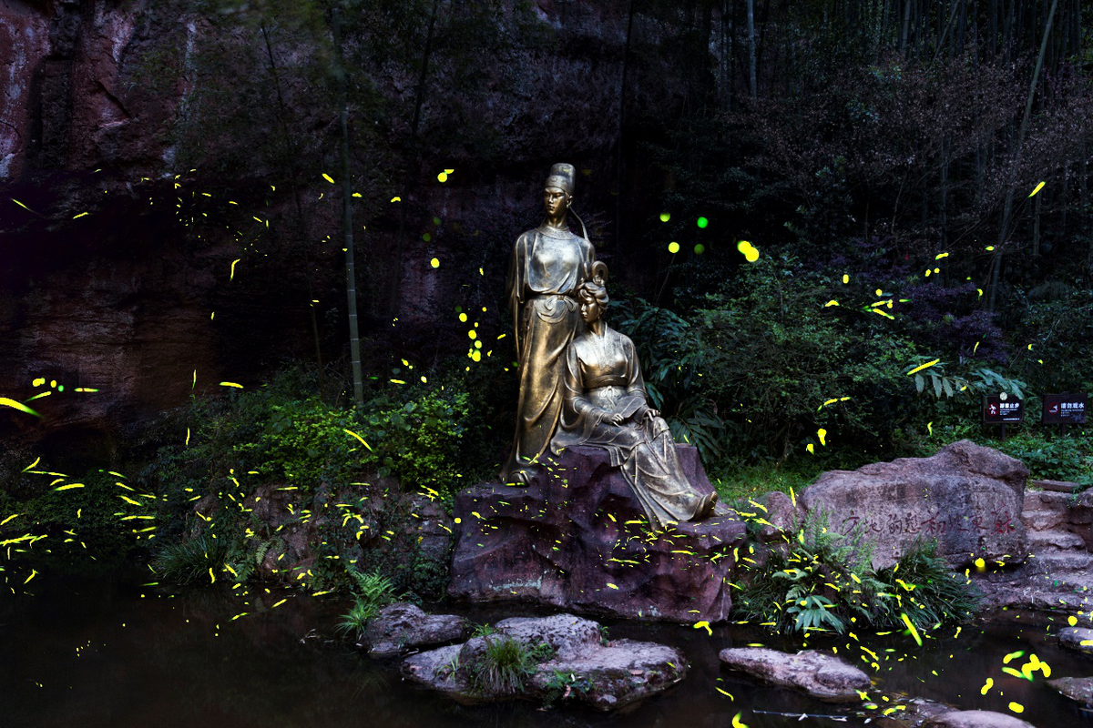 青神县中岩寺“竹里萤光东坡恋”(肖邡 摄)