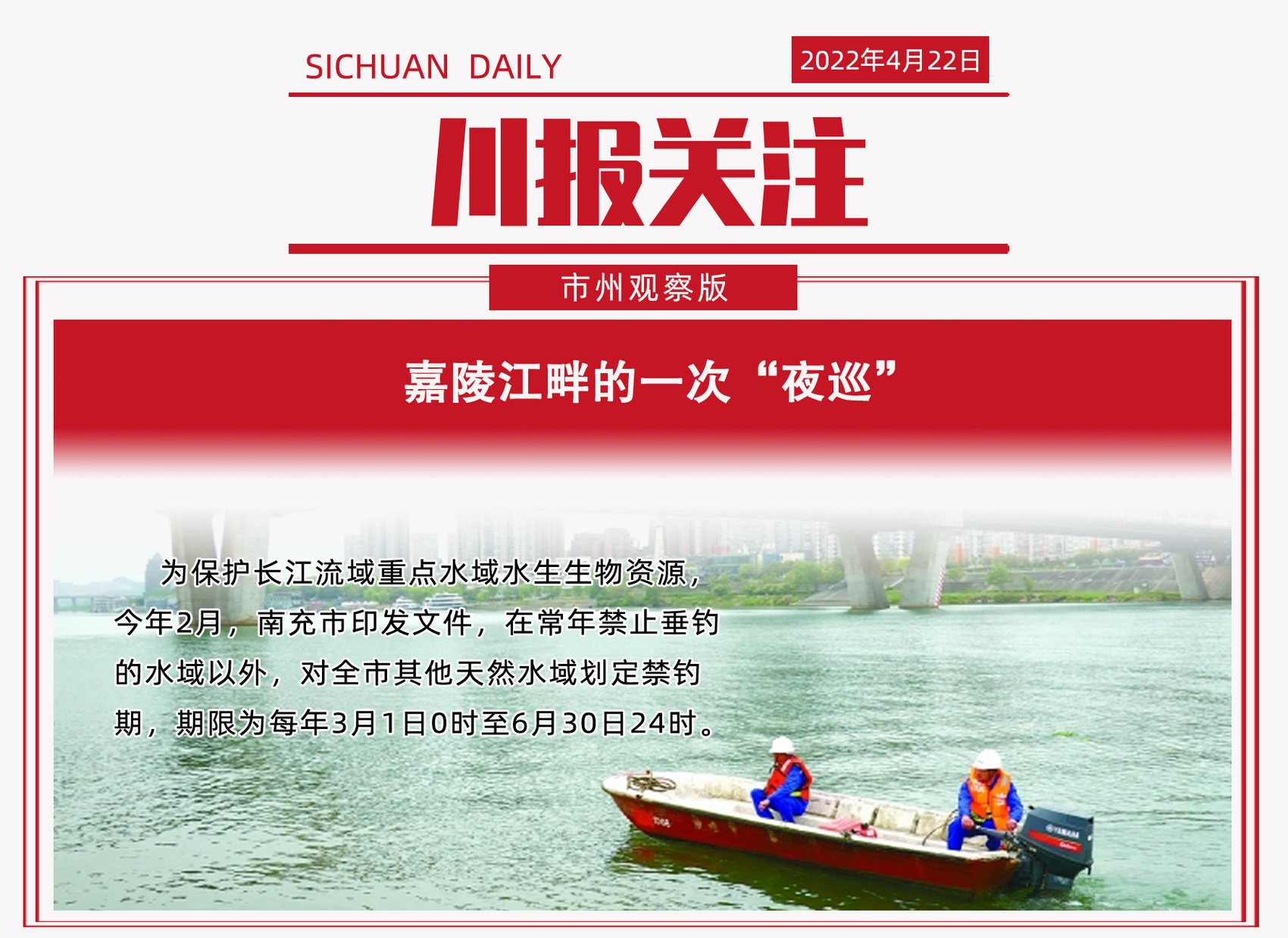 为保护长江流域重点水域水生生物资源,今年2月,南充市印发文件,在常年禁止垂钓的水域以外,对全市其他天然水域划定禁钓期,期限为每年3月1日0时至6月30日24时。