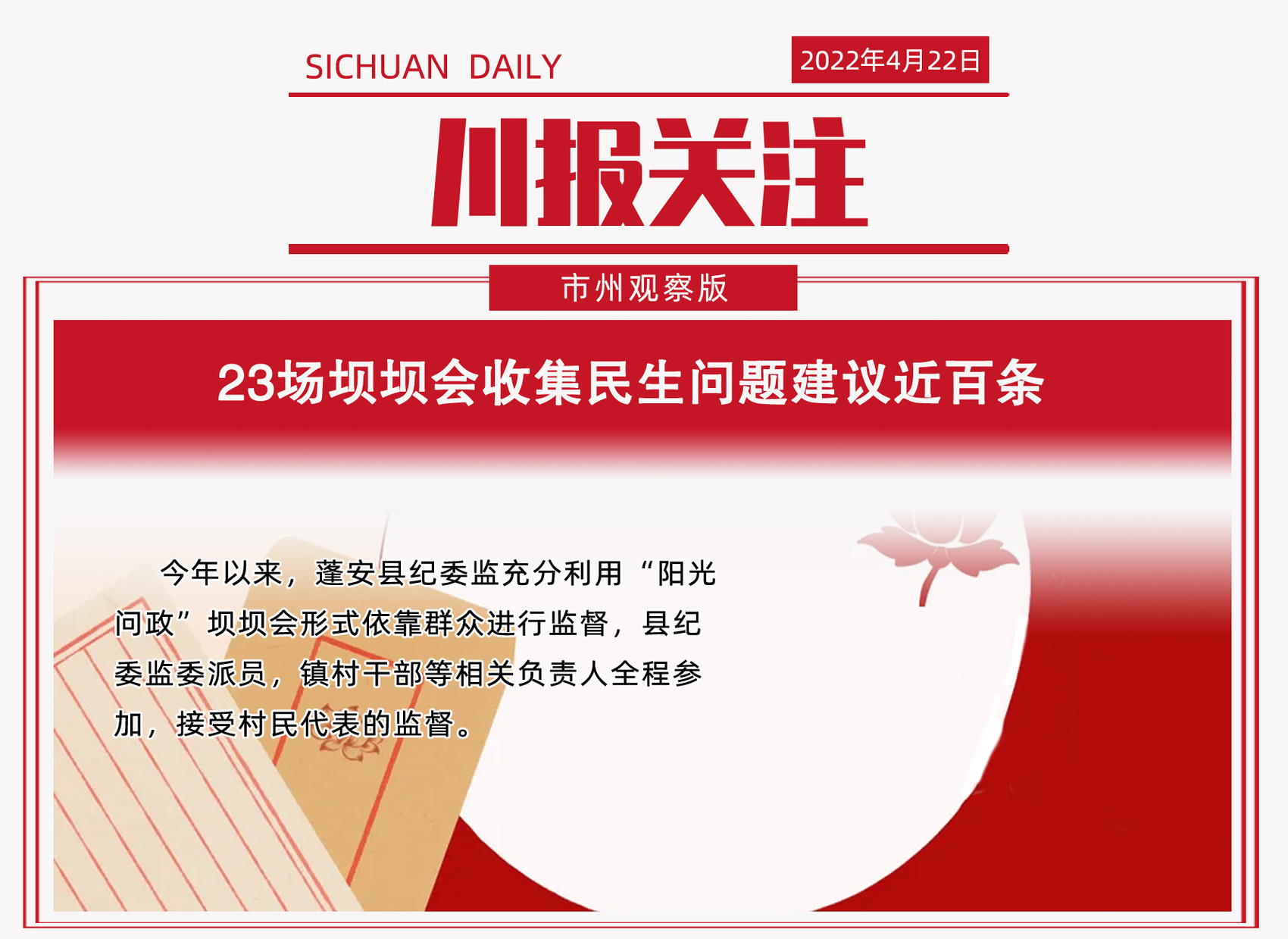 据悉,到目前为止,蓬安县纪委监委已在当地举办23场“阳光问政”坝坝会,收集各类民生问题42个、建议56条,督促解决问题38个,并对群众反映民生问题不作为、慢作为的11名党员干部进行了约谈。