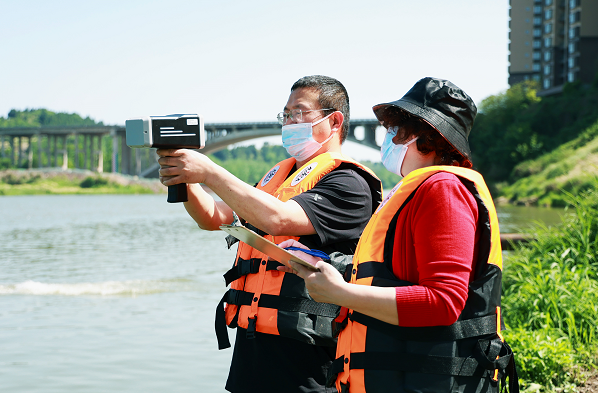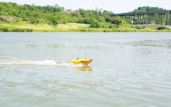 演练现场,“水、陆、空”的设备齐亮相。水面,全自动遥控船在沱江水面来回运动,掀起层层涟漪;空中,无人机携带电波流速仪在水面上方呼呼作响;陆地,内江水文职工手持电波流速仪在岸边测流,实现水文流量测验以及地形测量,为洪峰水位、流速、水质等水情预报提供基础信息。