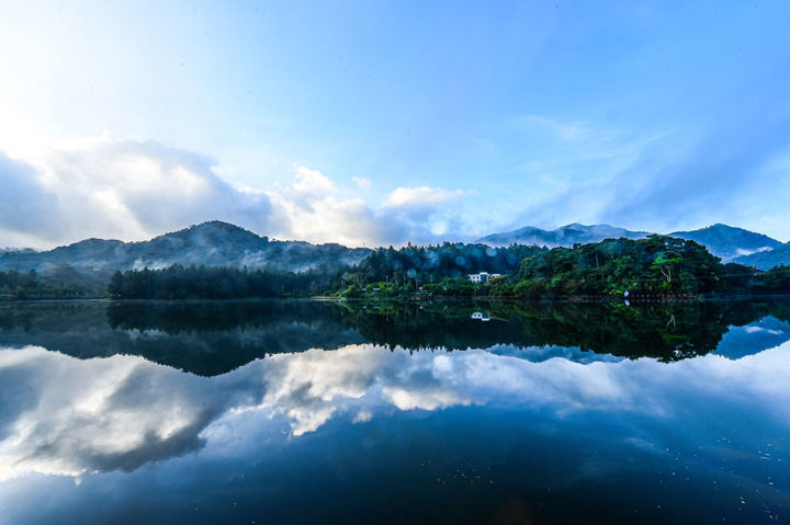 这是2020年9月4日拍摄的晨曦中的海南热带雨林国家公园尖峰岭和尖峰岭天池景色。新华社记者 蒲晓旭 摄