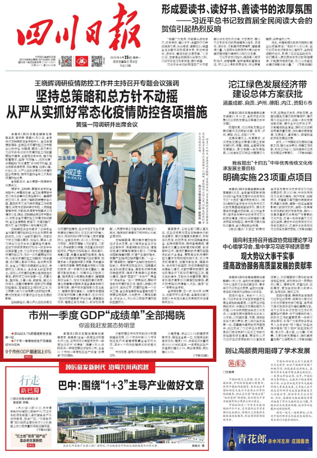 本报讯(四川日报全媒体记者 蒋君芳 张彧希)全省一季度经济数据出炉之后,各市州统计局陆续发布一季度经济运行“成绩单”。随着4月24日阿坝州一季度主要经济指标公布,全省21个市州一季度地区生产总值“成绩单”均已揭晓。