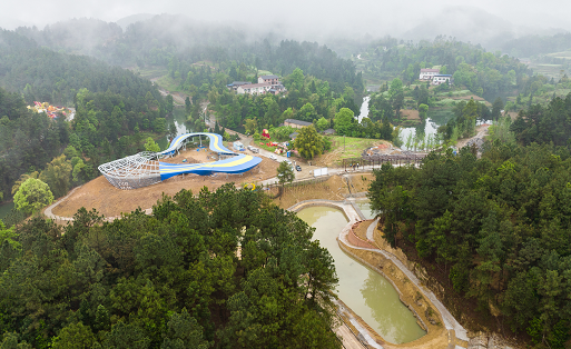 4月16日上午,内江威远县石板河旅游区内,工作人员正在对新增的玻璃水滑道项目进行调试。项目负责人介绍,该项目预计将于5月正式对外开放。来自自贡自流井区的骆女士十分期待:“娃儿肯定喜欢耍,一定要带他们来看看。”