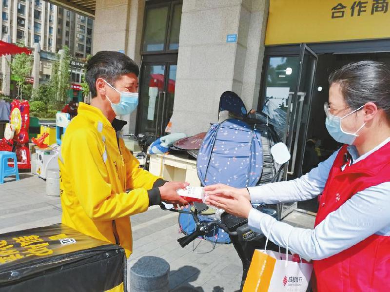 成都银行营业部开展慰问活动,向环卫工人、社区防疫志愿者、外卖人员等户外劳动者发放关爱物资