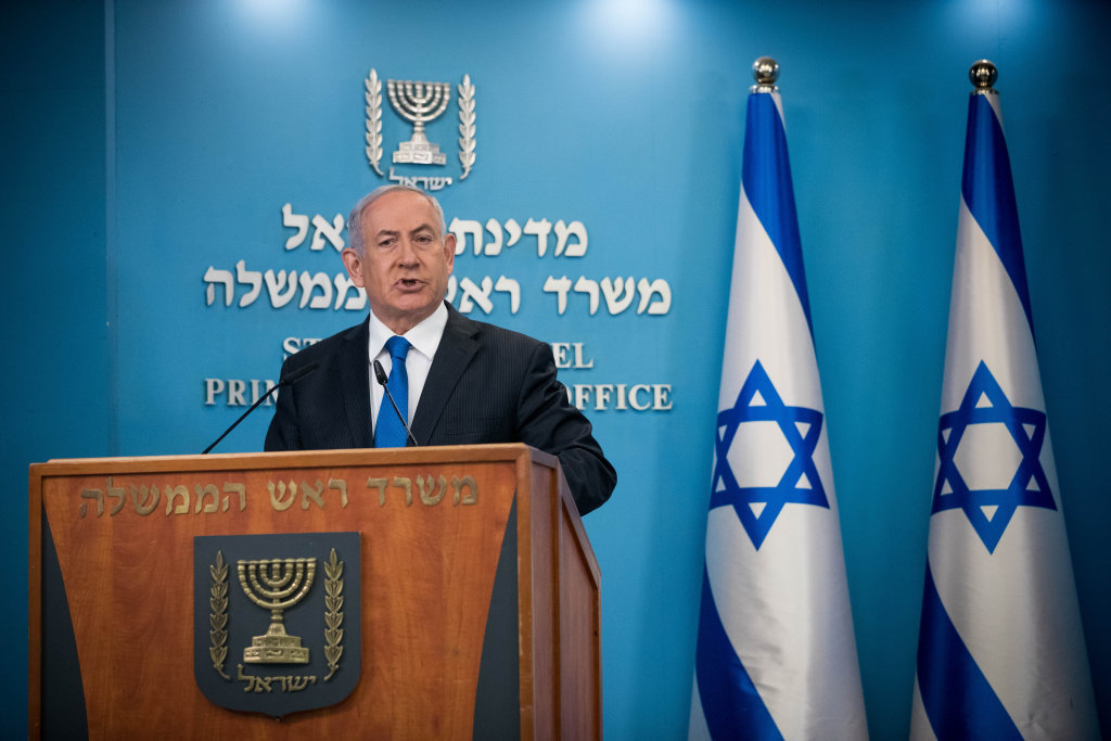 8月13日,以色列总理内塔尼亚胡在耶路撒冷发表讲话。图据新华社